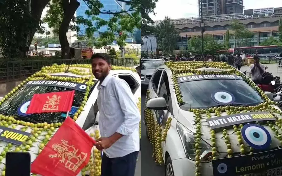 Ahead of the game, a die-hard RCB fan in Bengaluru was photographed with his car completely wrapped in Nimbu-Mirchi (lemon and green chillies), a traditional Indian custom to avoid bad luck.