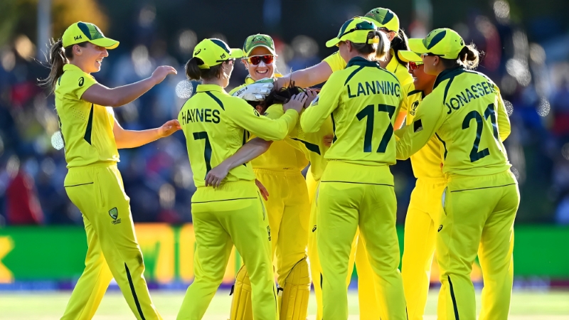 Ashleigh Gardner, Annabel Sutherland, Jess Jonassen, Georgia Wareham, Megan Schutt, Darcie Brown, Alyssa Healy (c & wk), Phoebe Litchfield, Ellyse Perry, Beth Mooney, Tahlia McGrath,
